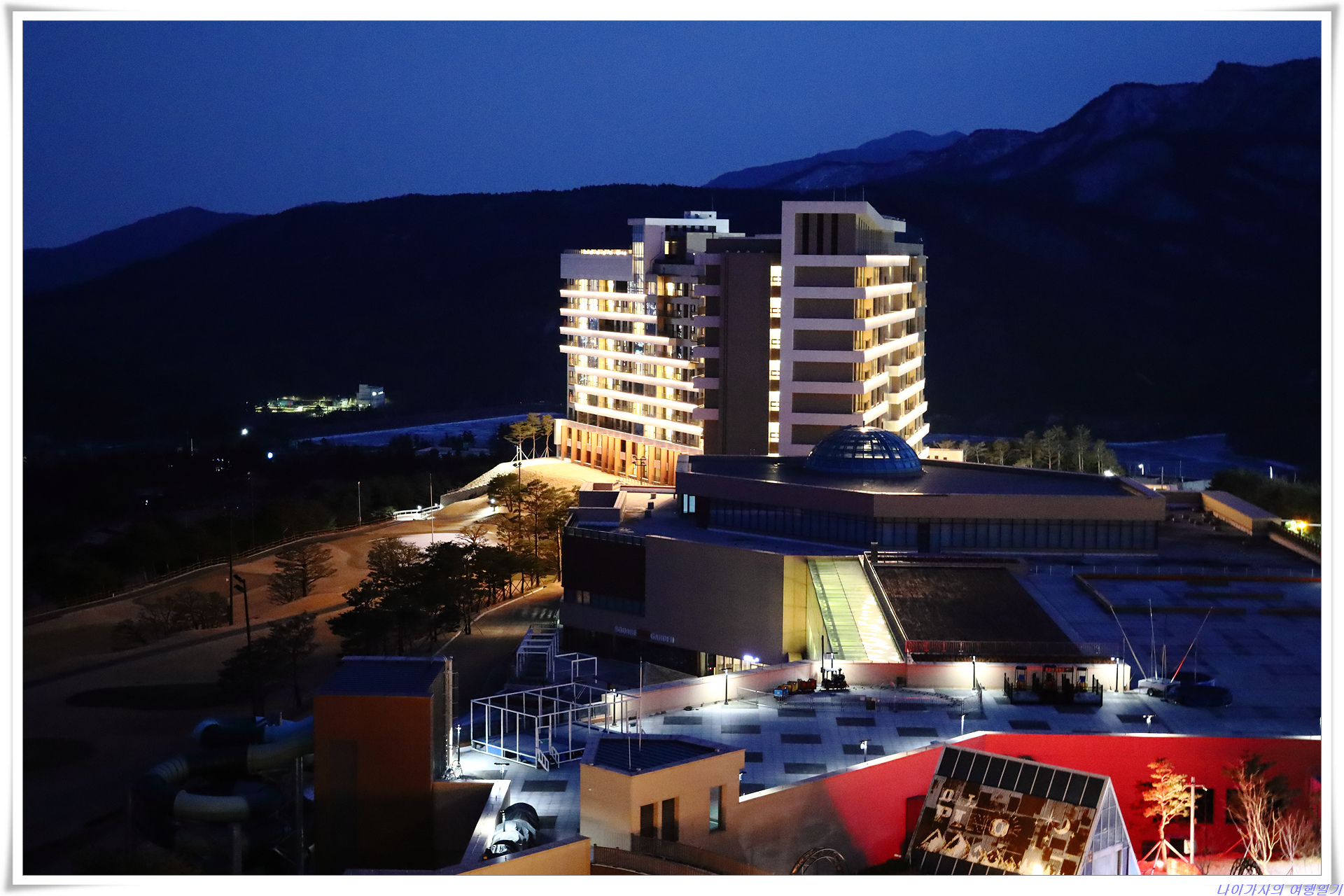 아이들 눈썰매장이 있는 곳인데 밤이 되니 이런 모습입니다.